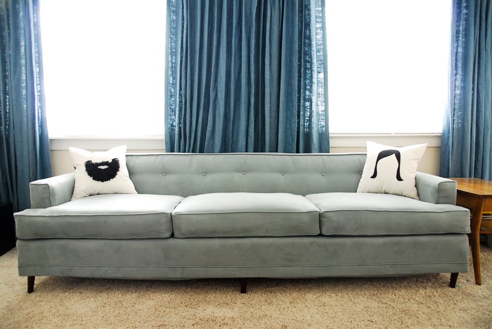 We restructured the arms, changed the back to be a connected cushion, re-foamed the seat cushions + attached new legs (legs purchased here).