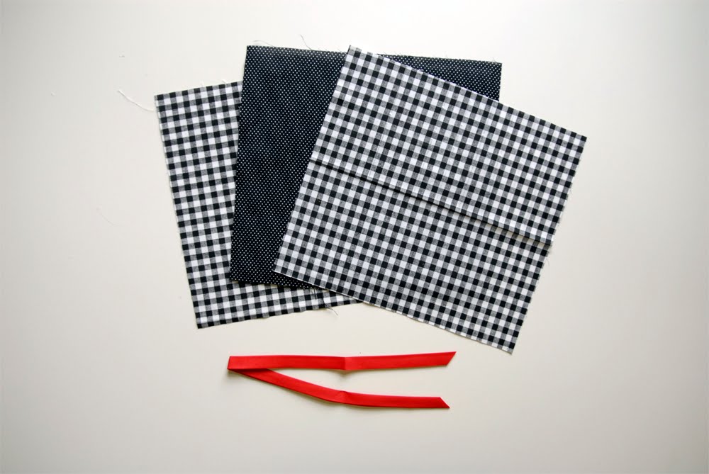 - fabric 3 10x11inch pieces – contrasting, coordinating or all the same