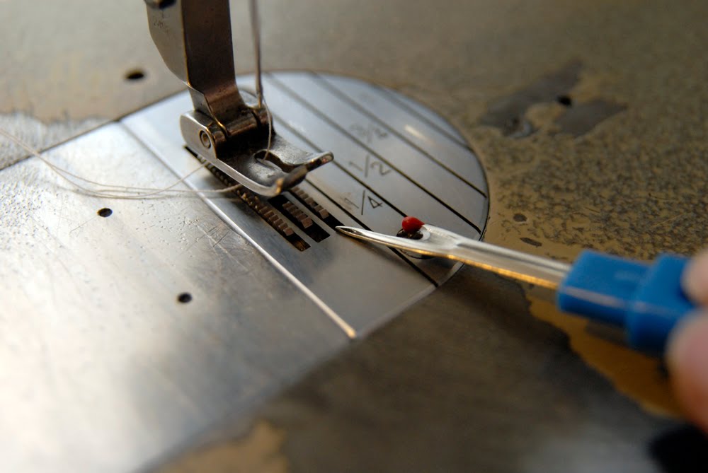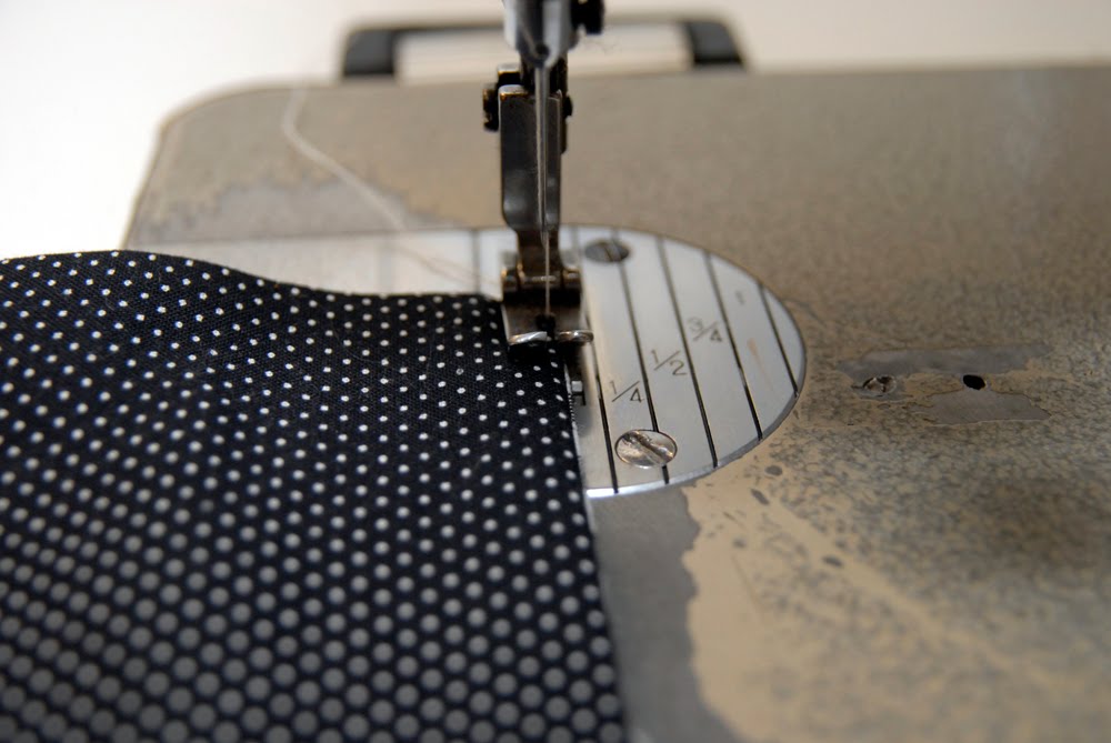 Use an 1/8 inch top-stitch. See where the seam riper is pointing? If you line your piece up with the inside of that feed dog, that will give you an 1/8 inch stitch.